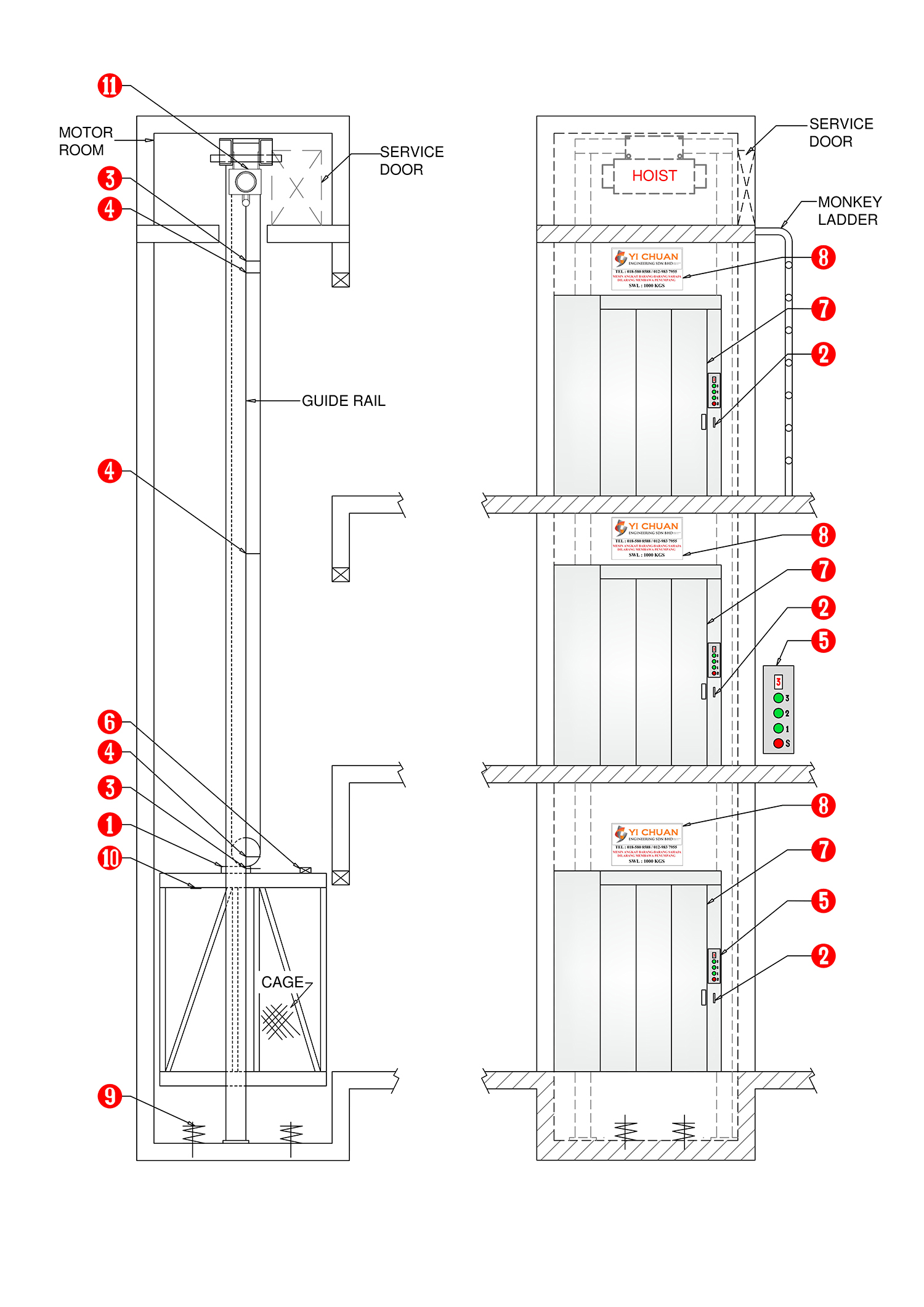 - Many years of hardwork involving experienced technical workers had make Yi Chuan known all over Malaysia that made the most reliable goods hoist with most number of safety features.